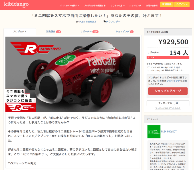 また、新たな試みとして、RCキットにスペシャルボディーをセットで販売することを実施。西川さん、圓田さん、藤村さんがデザインしたボディーをFormlabsの協力によって、Form2で出力しました。2万円近い価格にも関わらず、kibidangoで発表すると即完売するという嬉しいサプライズも。
